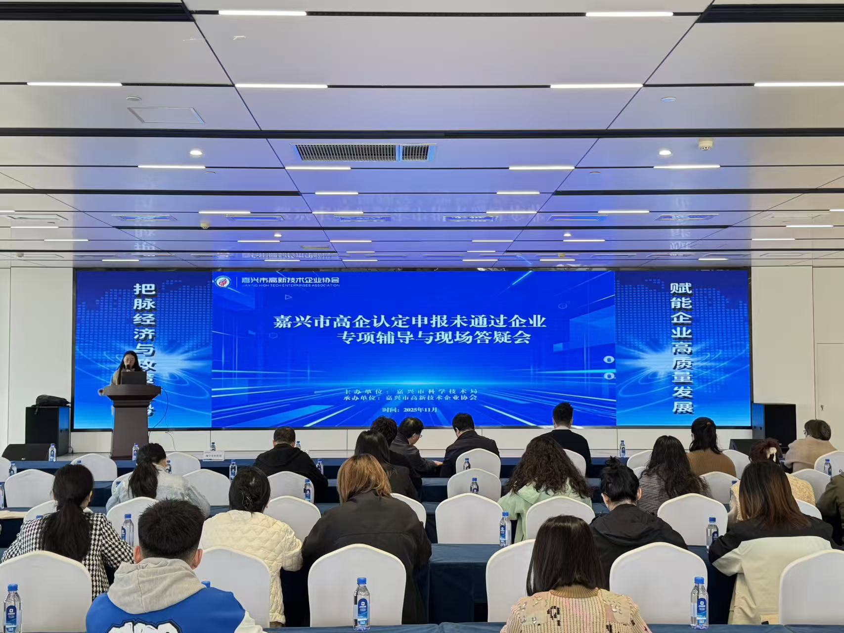 2025年11月14日,由嘉兴市科学技术局主办、嘉兴市高新技术企业协会承办的“嘉兴市高企认定申报未通过企业专项辅导与现场答疑会”,在嘉兴智慧产业创新园12号楼三楼路演中心举办。本次专项辅导与现场答疑会聚焦企业高企申报痛点,吸引全市70多家2025年申报未通过企业及2026年待重新认定企业的相关负责人参加。