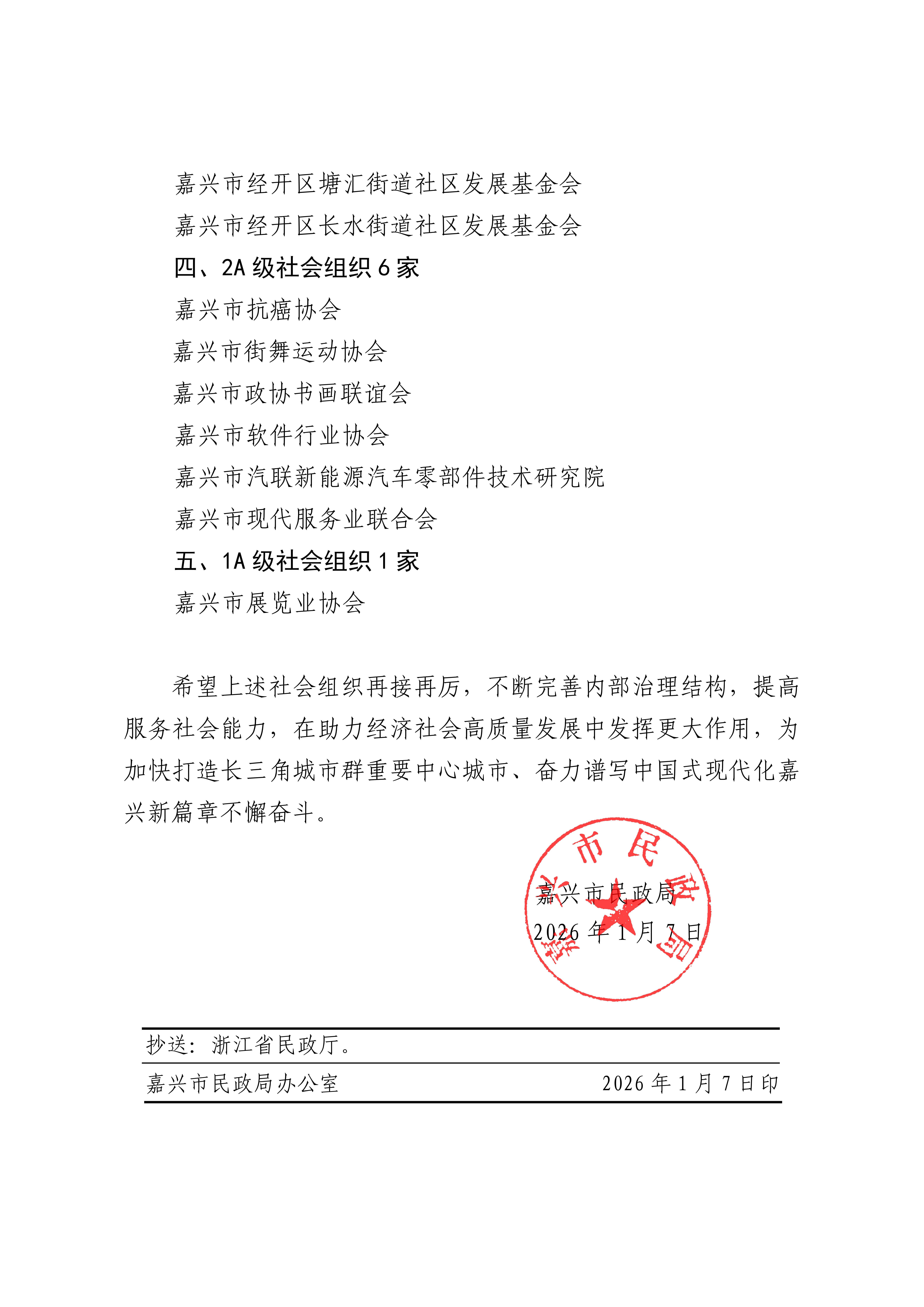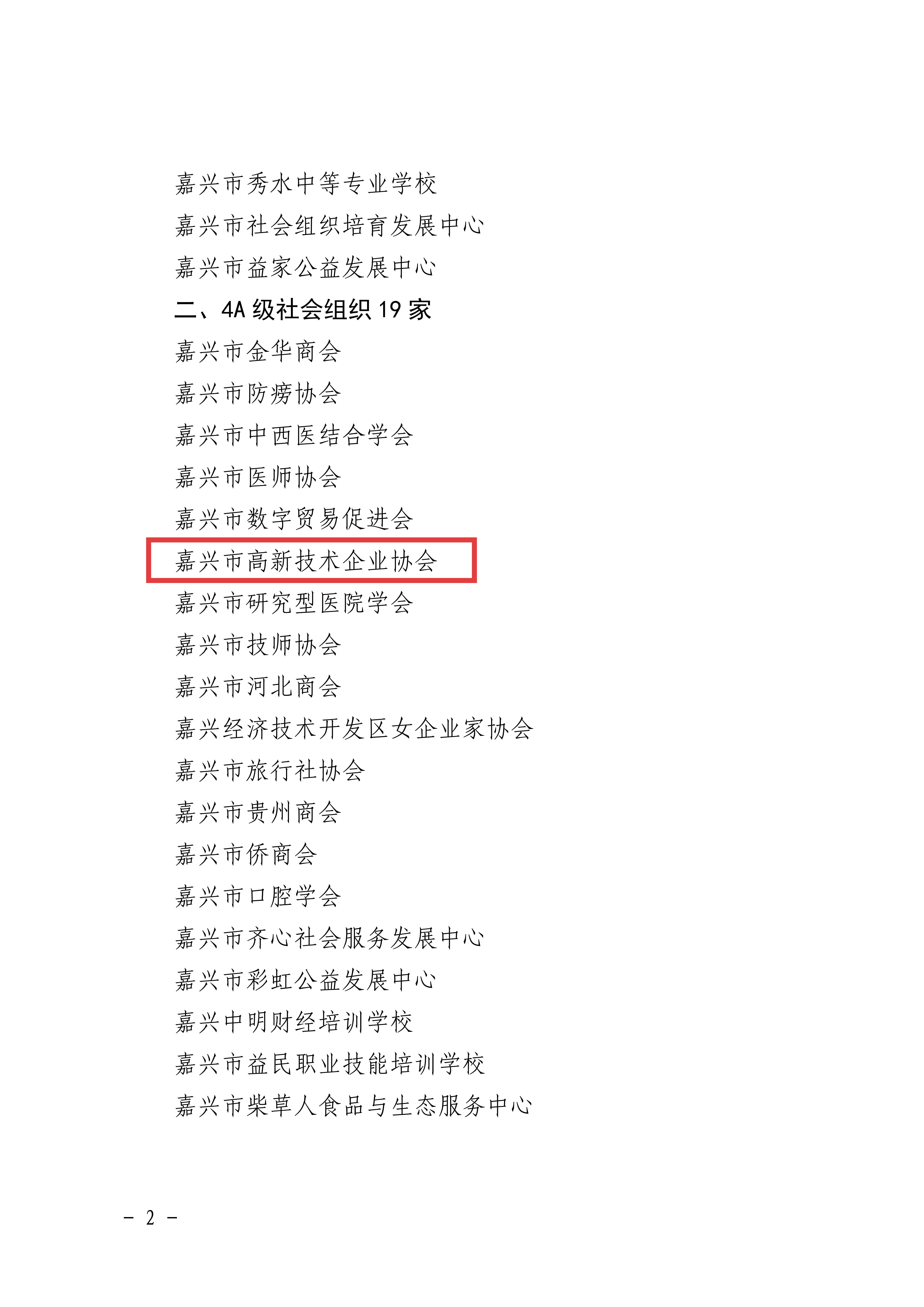 近日,嘉兴市民政局发布了《嘉兴市民政局关于2025年度市级社会组织等级评定结果的通报》,嘉兴市高新技术企业协会喜获4A级社会组织称号!